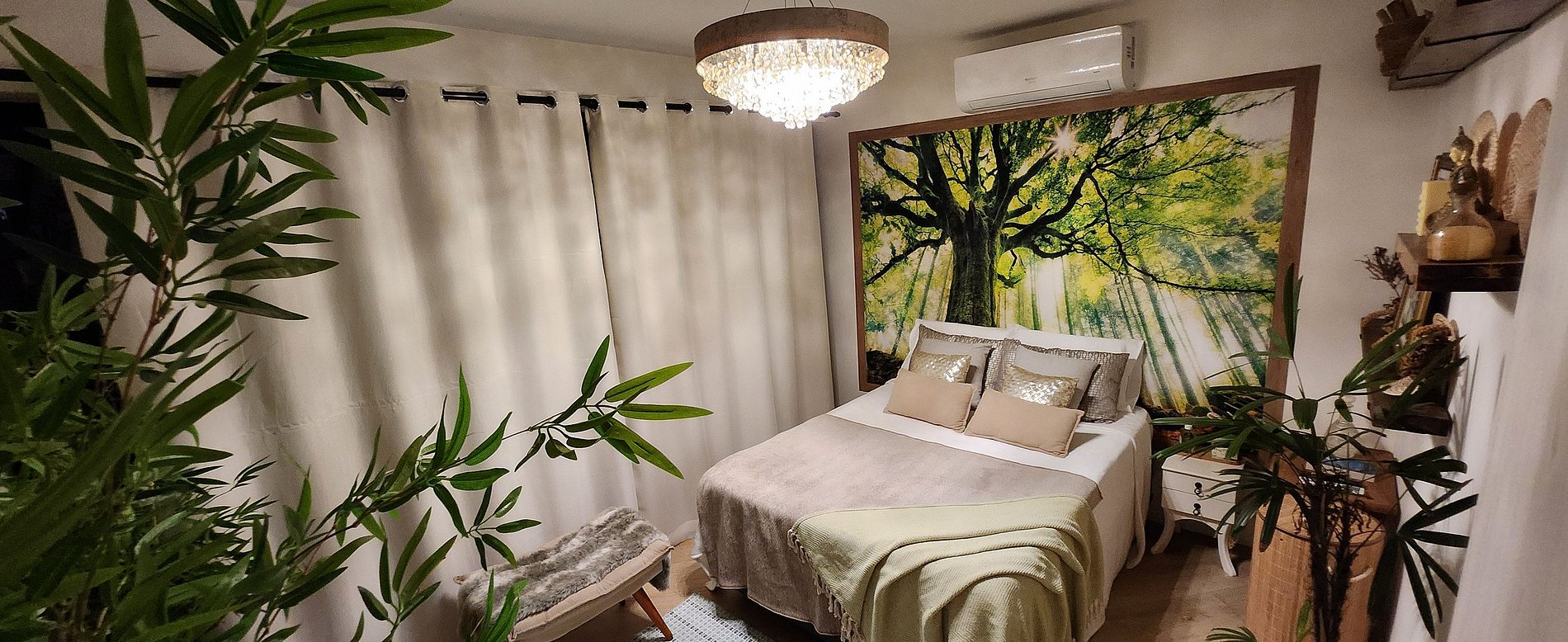 Com perfume exclusivo de Bambu Verde o quarto revela um ambiente inspirado para meditar, refletir e descansar num clima zen de autoconhecimento. Viva esta experiencia e sinta seu poder.